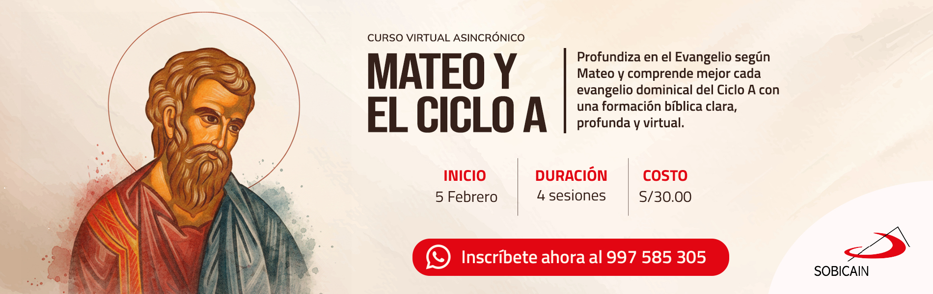 Este febrero, potencia y profundiza en el Evangelio de Mateo 🚀📖 Un curso virtual y flexible que cuenta con el respaldo de expertos para un aprendizaje real y a tu ritmo.